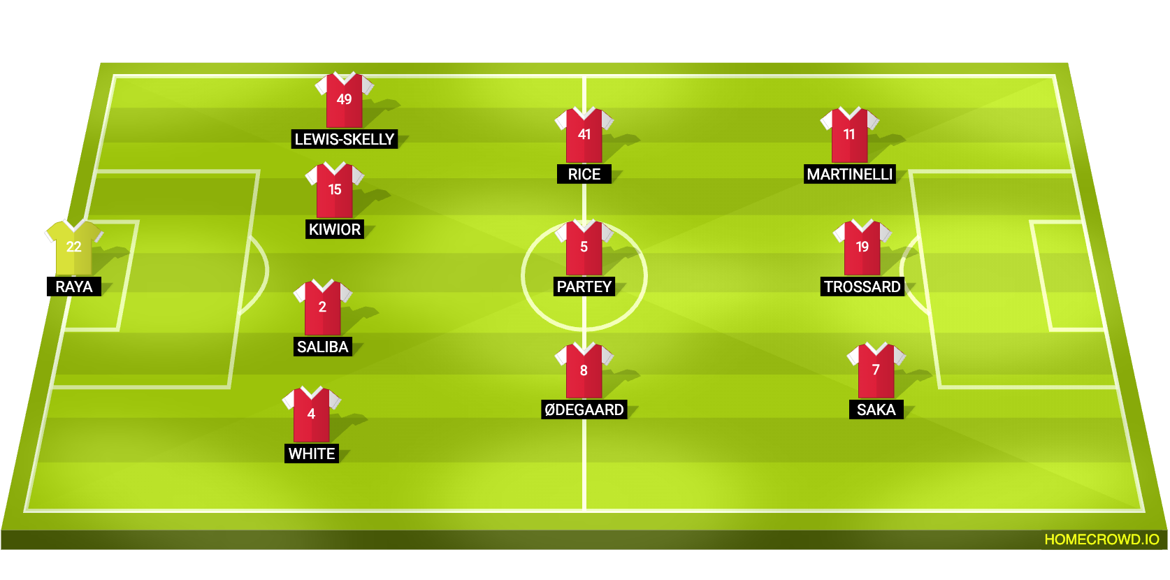 Probable Lineup (4-3-3): Raya; Raya; Ben White, Saliba, Kiwior, Lewis-Skelly; Odegaard, Partey, Rice; Saka, Trossard, Martinelli