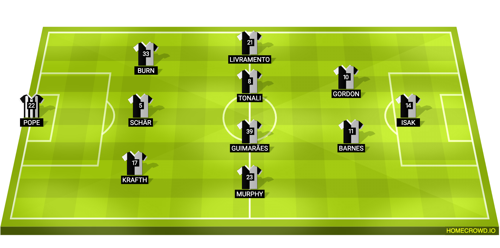 Probable Lineup (3-4-2-1): Pope; Krafth, Schar, Burn; Murphy, Tonali, Guimaraes, Livramento; Barnes, Gordon; Isak