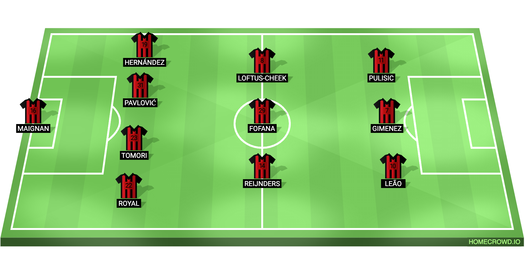 Probable Lineup (4-3-3): Maignan; Royal, Tomori, Pavlovic, Hernandez; Reijnders, Fofana, Loftus-Cheek; Pulisic, Gimenez, Leao