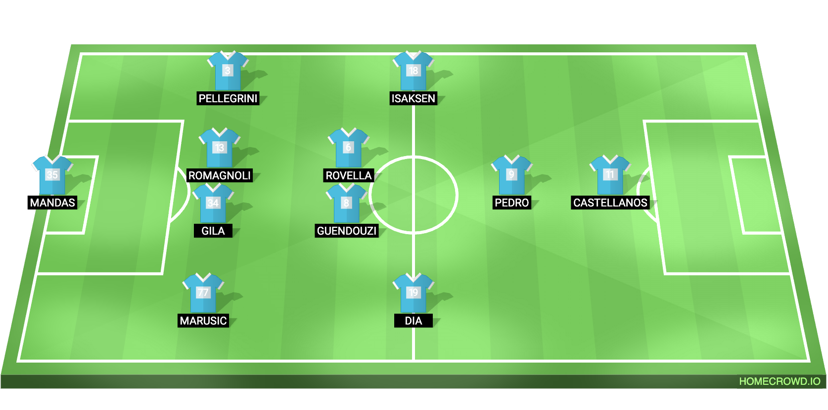 Probable Lineup (4-2-3-1): Mandas; Marusic, Gila, Romagnoli, Pellegrini; Guendouzi, Rovella; Dia, Pedro, Isaksen; Castellanos