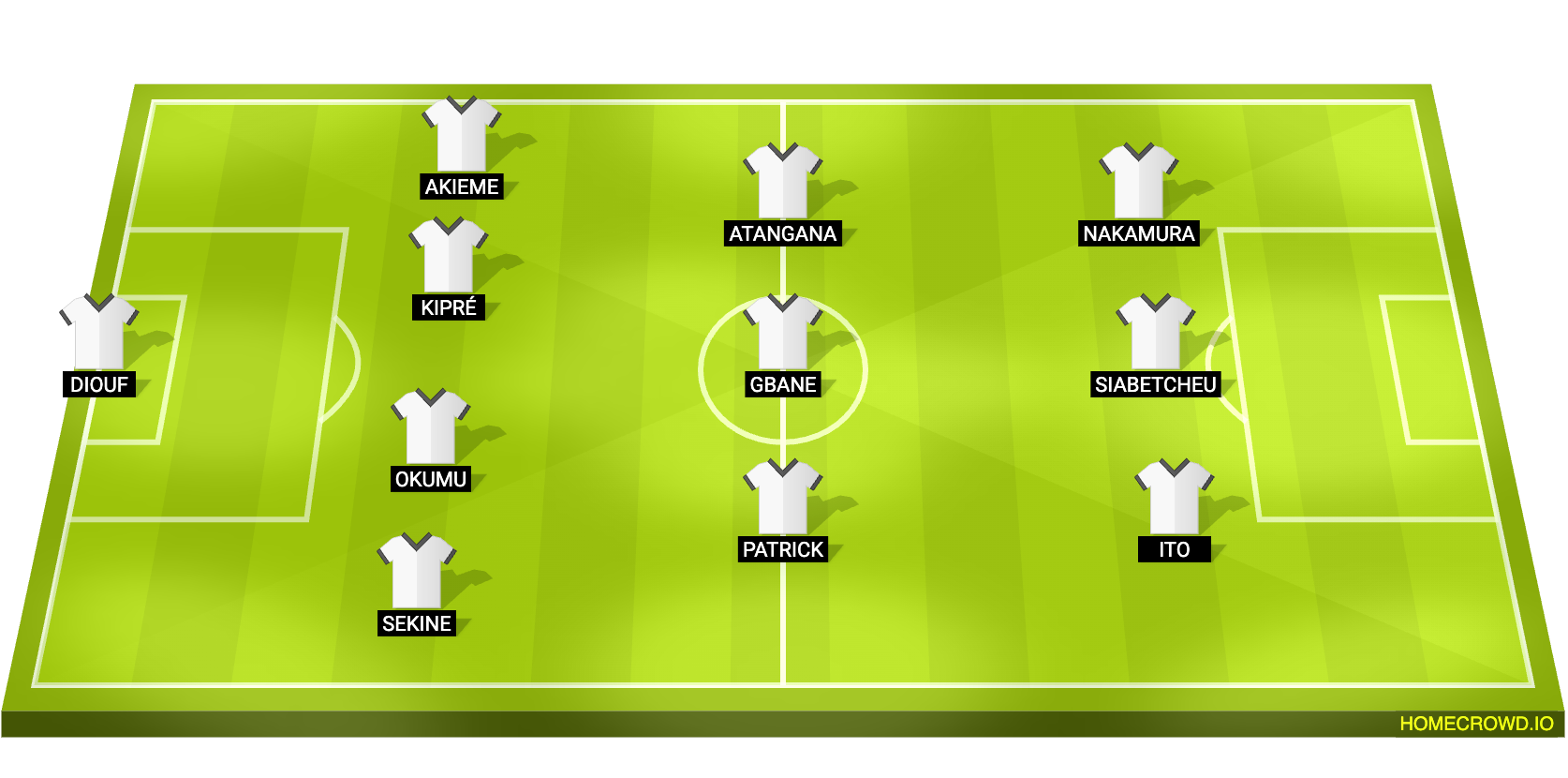 Probable Lineup (4-3-3): Diouf; Sekine, Okumu, Kipre, Akieme; Patrick, Gbane, Atangana; Ito, Siebatcheu, Nakamura