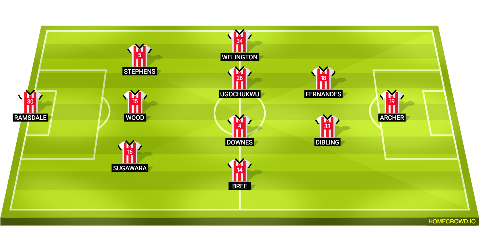 Probable Lineup (3-4-2-1): Ramsdale; Sugawara, Wood, Stephens; Bree, Downes, Ugochukwu, Welington; Dibling, Fernandes; Archer