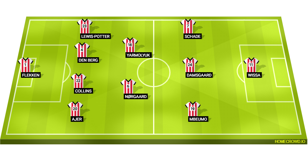 Probable Lineup (4-2-3-1): Flekken; Ajer, Collins, van den Berg, Lewis-Potter; Norgaard, Yarmolyuk; Mbeumo, Damsgaard, Schade; Wissa