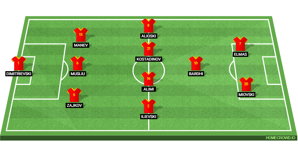 Probable Lineup (3-4-1-2): Dimitrievski; Zajkov, Musliu, Manev; Ilievski, Alimi, Kostadinov, Alioski; Bardhi; Miovski, Elmas