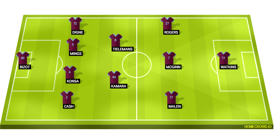 Probable Lineup (4-2-3-1): Bizot; Cash, Konsa, Mings, Digne; Kamara, Tielemans; Malen, McGinn, Rogers; Watkins