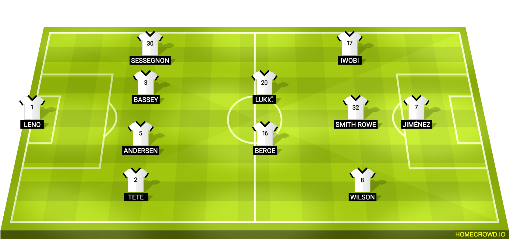 Probable Lineup (4-2-3-1): Leno; Tete, Andersen, Bassey, Sessegnon; Berge, Lukic; Wilson, Smith-Rowe, Iwobi; Jimenez