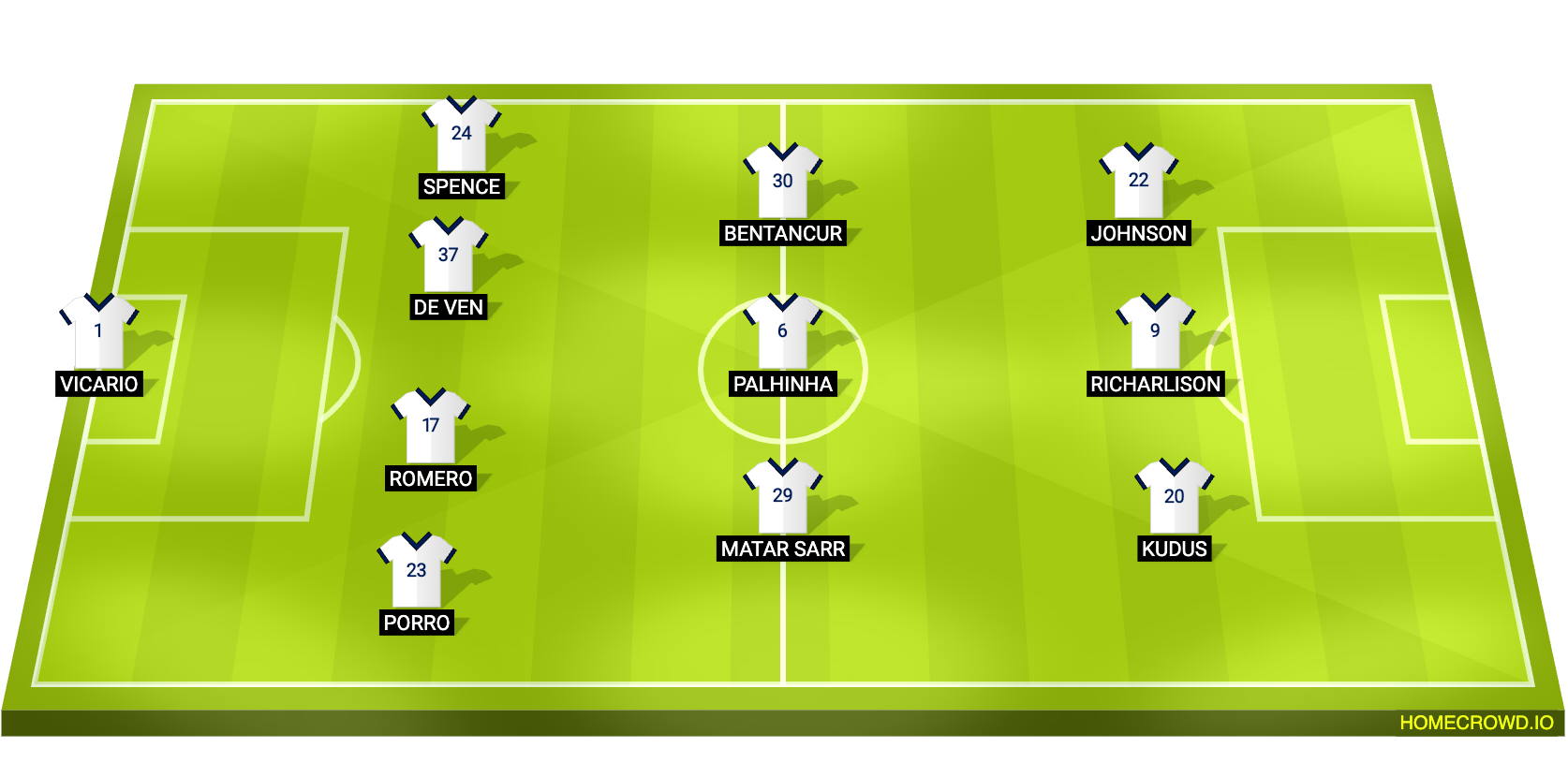 Probable Lineup (4-3-3): Vicario; Porro, Romero, Van de Ven, Spence; Bentancur, Palhinha, Sarr; Kudus, Richarlison, Johnson