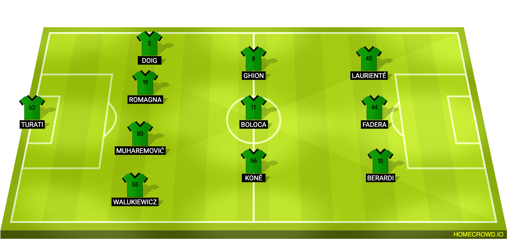Probable lineup (4-3-3): Turati; Walukiewicz, Muharemovic, Romagna, Doig; Kone, Boloca, Ghion; Berardi, Fadera, Lauriente