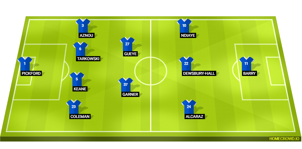 Probable Lineup (4-2-3-1): Pickford; Coleman, Keane, Tarkowski, Aznou; Garner, Gueye; Alcaraz, Dewsbury-Hall, Ndiaye; Barry