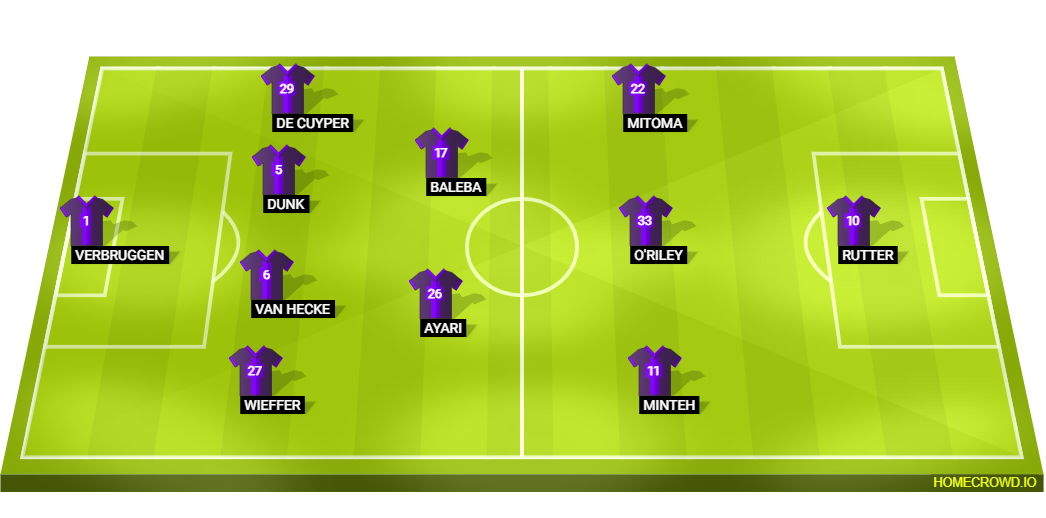 Probable Lineup (4-2-3-1): Verbruggen; Wieffer, Hecke, Dunk, de Cuyper; Ayari, Baleba; Minteh, O’Riley, Mitoma; Rutter