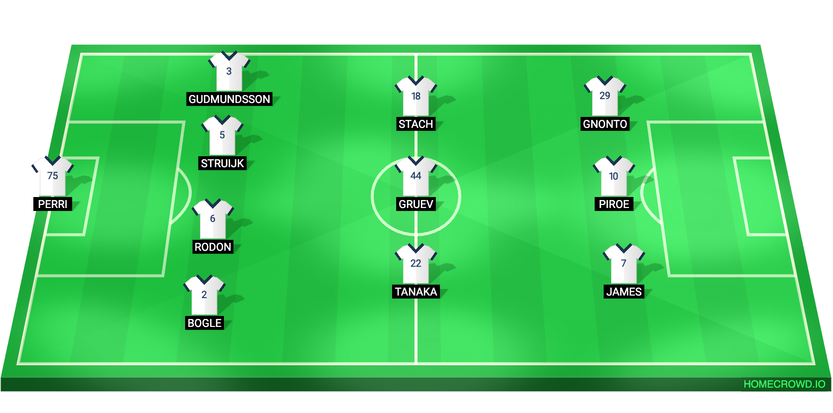 Probable Lineup (4-3-3): Perri; Bogle, Rodon, Struijk, Gudmundsson; Gruev, Tanaka, Stach; James, Piroe, Gnonto