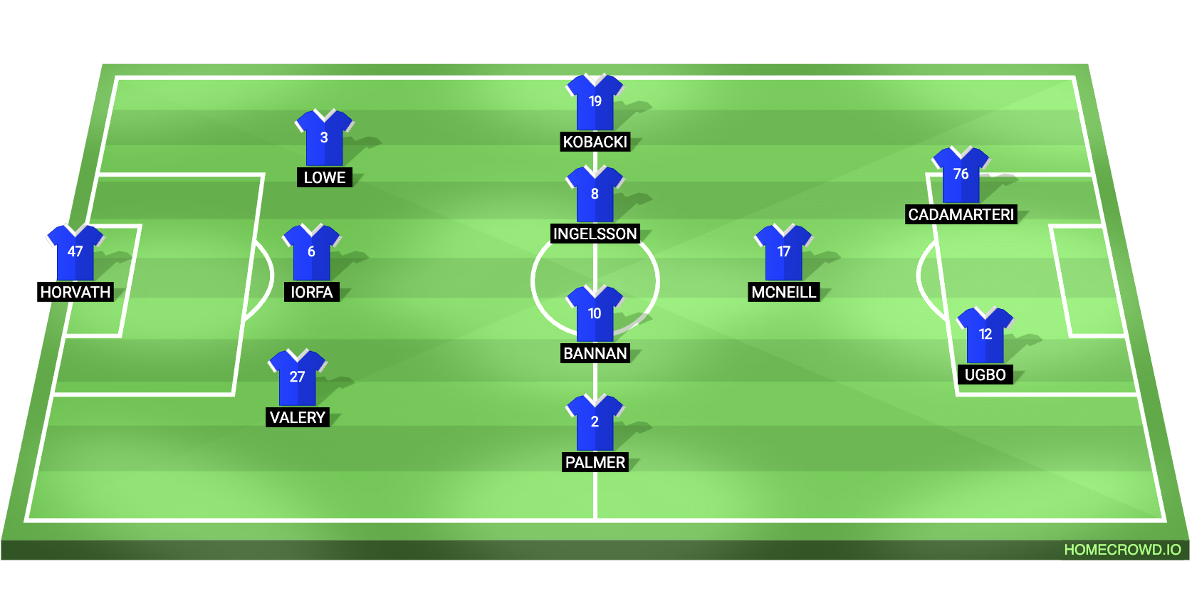 Probable Lineup (3-4-1-2): Horvath; Valery, Iorfa, Lowe; Palmer, Ingelsson, Bannan, Kobacki; McNeill; Ugbo, Cadamarteri