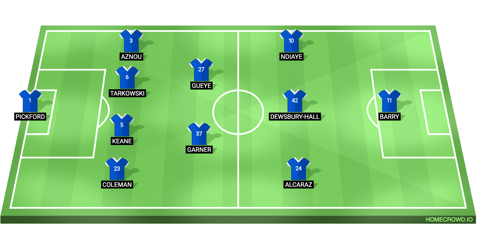 Probable Lineup (4-2-3-1): Pickford; Coleman, Tarkowski, Keane, Aznou; Gueye, Garner; Alcaraz, Dewsbury-Hall, Ndiaye; Barry
