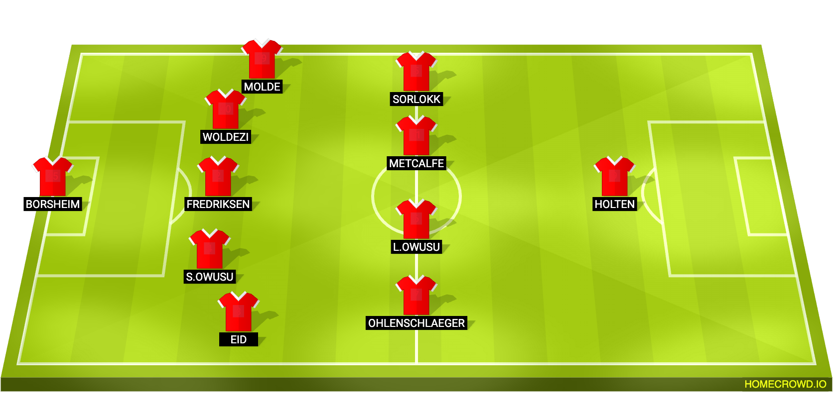 Probable Lineup (5-4-1): Borsheim; Eid, Solomon Owusu, Fredriksen, Woledzi, Molde; Ohlenschlaeger, Leonard Owusu, Metcalfe, Sorlokk; Holten