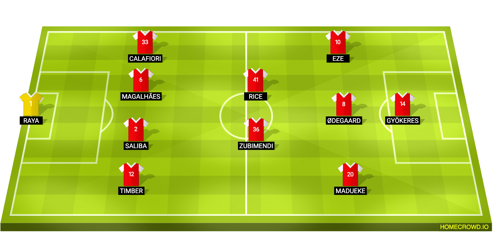 Probable Lineup (4-2-3-1): Raya; Timber, Saliba, Gabriel, Calafiori; Zubimendi, Rice; Madueke, Odegaard, Eze; Gyokeres