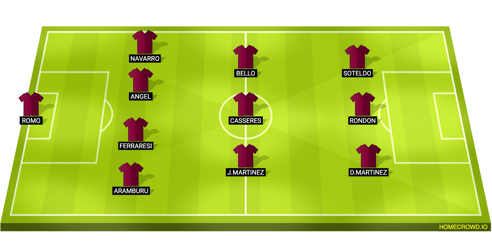 Probable Lineup (4-3-3): Romo; Aramburu, Ferraresi, Angel, Navarro; Jose Martinez, Casseres, Bello; David Martinez, Rondon, Soteldo
