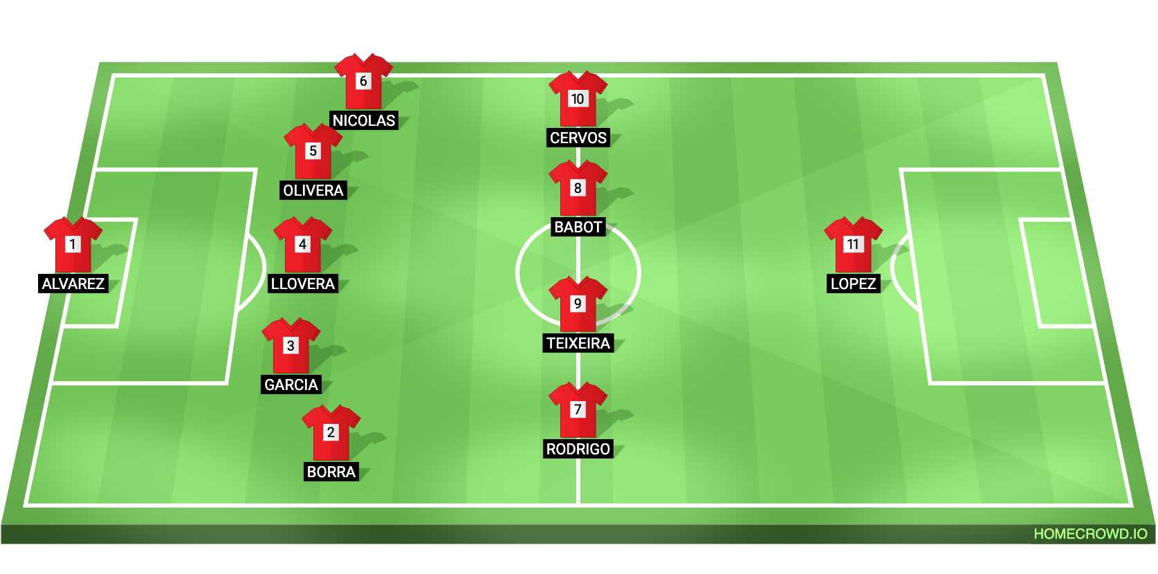 Probable Lineup (5-4-1): Alvarez; Borra, Garcia, Llovera, Olivera, Nicolas; Rodrigo, Babot, Teixeira, Cervos, Lopez