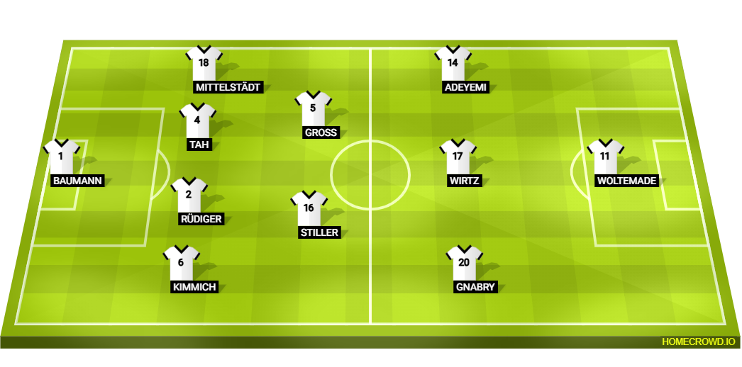 Probable Lineup (4-2-3-1): Baumann; Kimmich, Rudiger, Tah, Mittelstadt; Stiller, Gross; Gnabry, Wirtz, Adeyemi; Woltemade