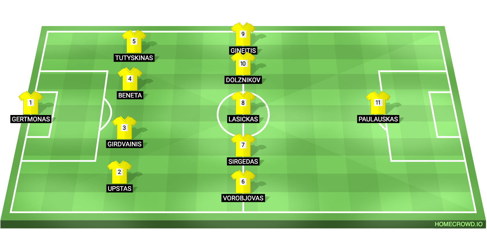 Probable Lineup (4-5-1): Gertmonas; Upstas, Girdvainis, Beneta, Tutyskinas; Vorobjovas, Sirgedas, Lasickas, Gineitis, Dolznikov; Paulauskas