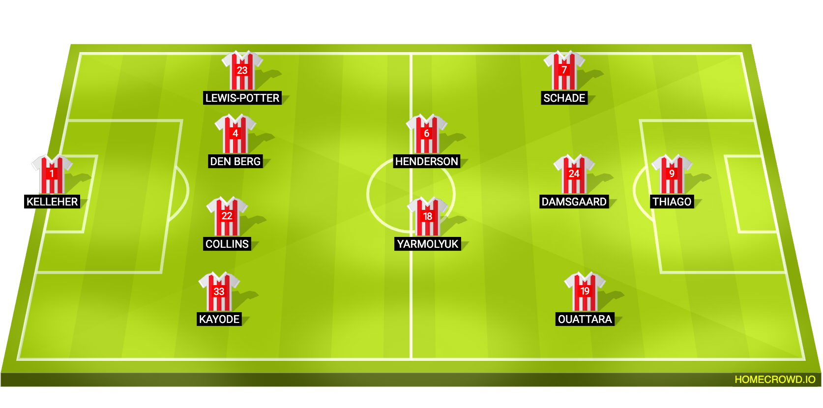 Probable Lineup (4-2-3-1): Kelleher; Kayode, Collins, Berg, Lwis-Potter; Yarmolyuk, Henderson; Outtara, Damsgaard, Schade; Thiago