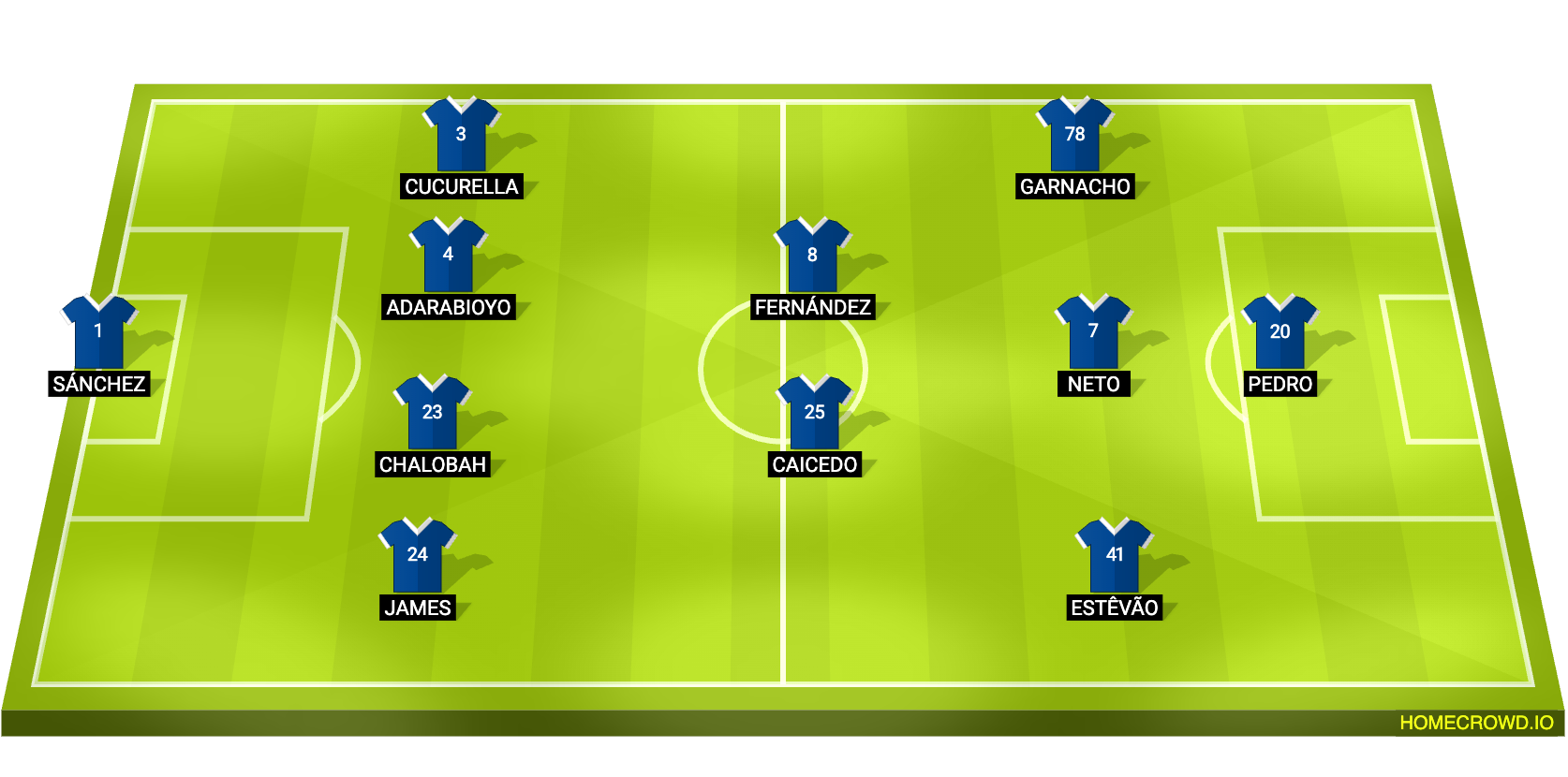 Probable Lineup (4-2-3-1): Sanchez; James, Chalobah, Tosin, Cucurella; Caicedo, Fernandez; Estevao, Neto, Garnacho; Pedro