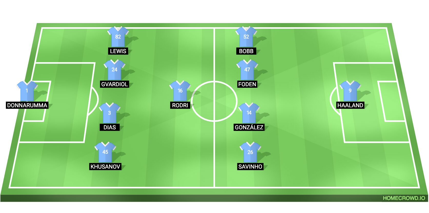 Abdukodir Khusanov and Rico Lewis are set to start as the full-backs. They will look to help out defensively and contribute in the attack. Ruben Dias will form the central defensive partnership alongside Josko Gvardiol.