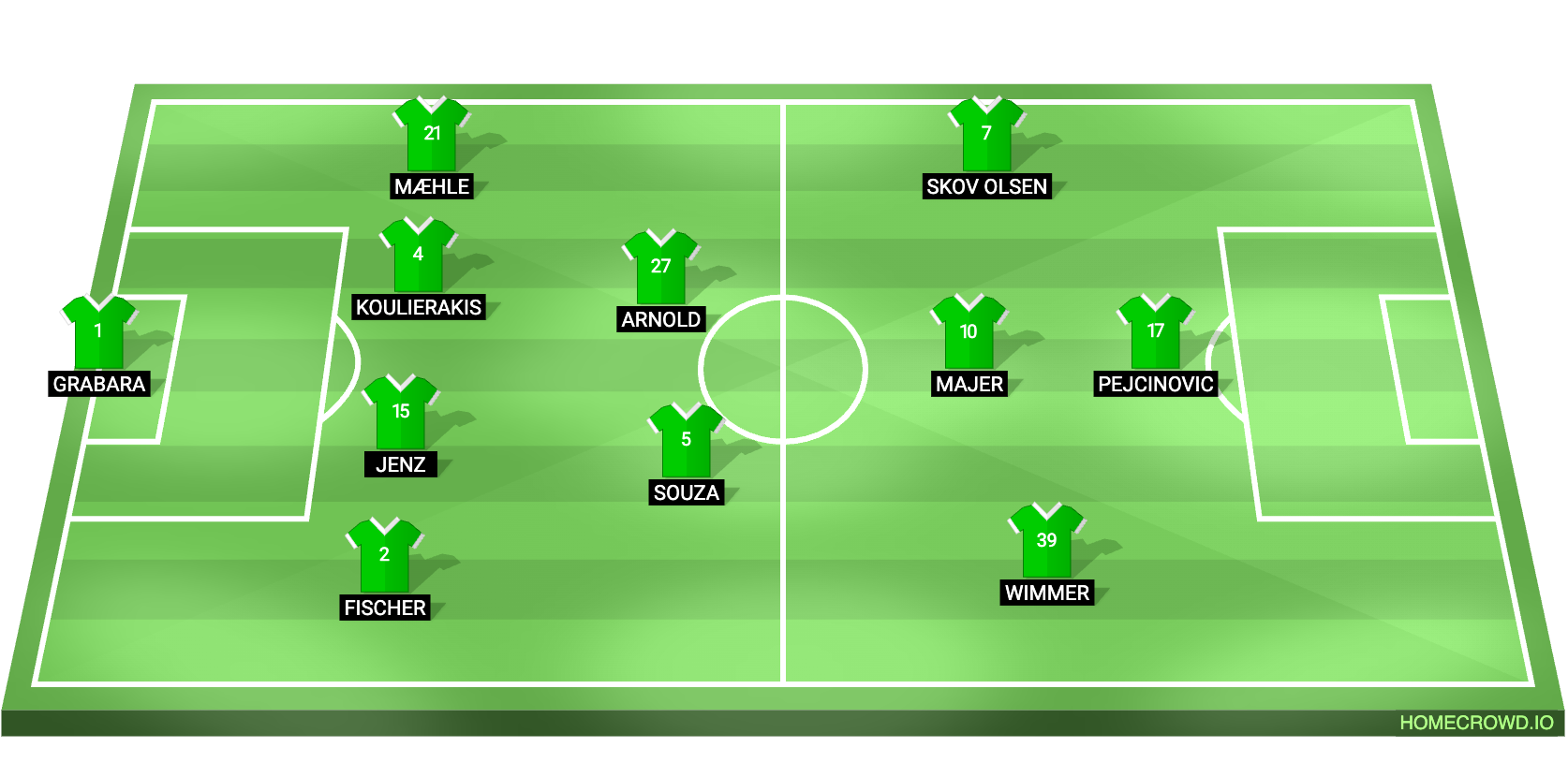 Probable Lineup (4-2-3-1): Grabara, Fischer, Mæhle, Jenz, Koulierakis, Arnold, Souza, Skov Olsen, Wimmer, Majer, Pejcinovic