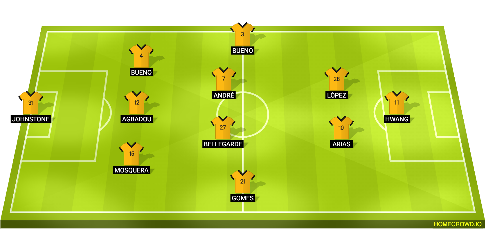 Probable Lineup (3-4-2-1): Johnstone; Mosquera, Agbadou, Santiago Bueno; Rordrigo Gomes, Bellegarde, Andre, Hugo Bueno; Arias, Lopez; Hwang