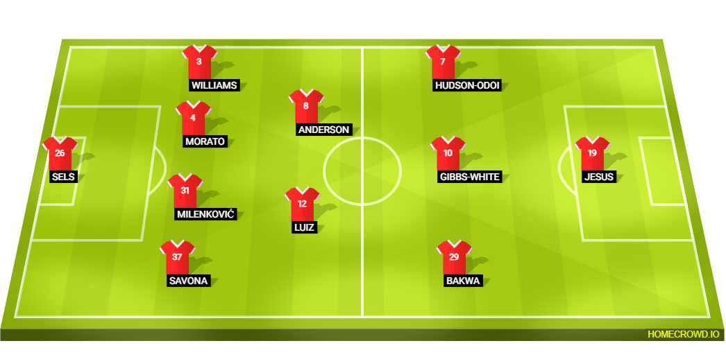Probable Lineup (4-2-3-1): Sels; Savona, Milenkovic, Morato, Williams; Luiz, Anderson; Bakwa, Gibbs-White, Hudson-Odoi; Igor Jesus