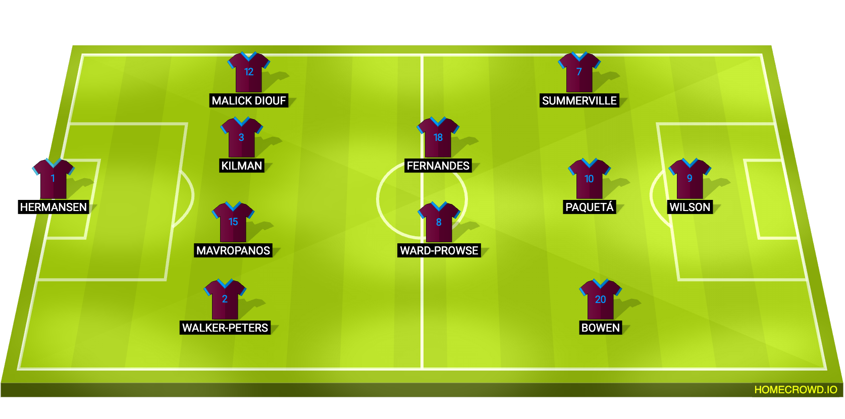 Probable Lineup (4-2-3-1): Hermansen; Walker-Peters, Mavropanos, Kilman, Diouf; Ward-Prowse, Fernandes; Bowen, Paqueta, Summerville; Wilson