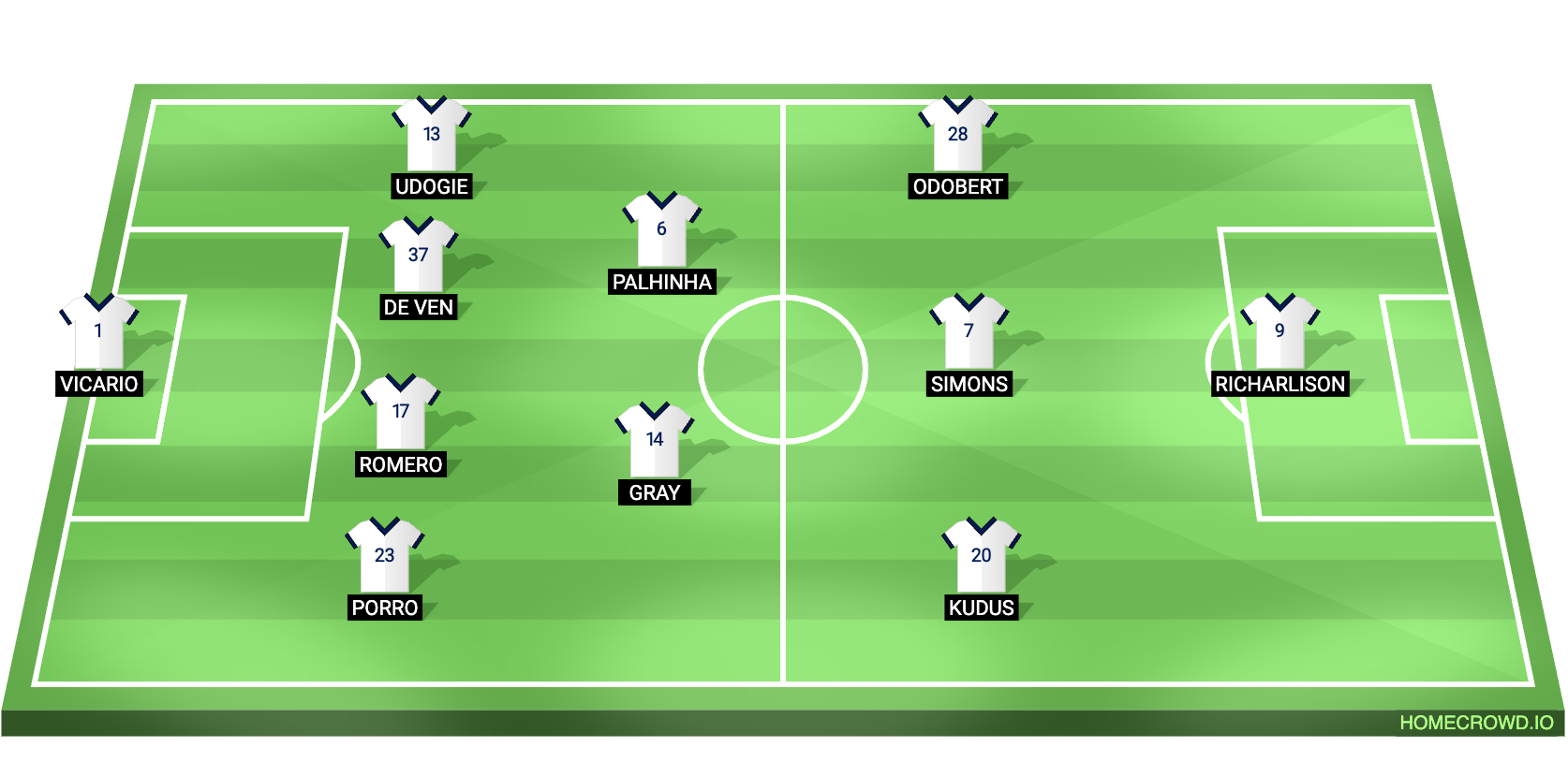 Probable Lineup (4-2-3-1): Vicario; Porro, Romero, Van de Ven, Udogie; Palhinha, Gray; Kudus, Simons, Odobert; Richarlison
