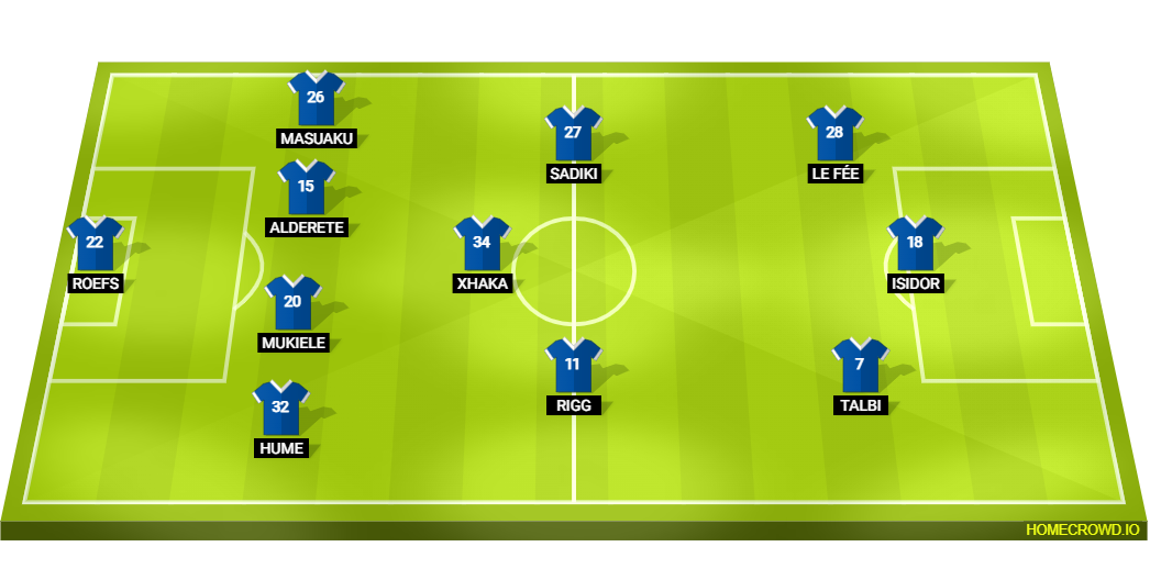 Probable Lineup (4-3-3): Roefs; Hume, Mukiele, Alderete, Masuaku; Rigg, Xhaka, Sadiki; Talbi, Isidor, Le Fee