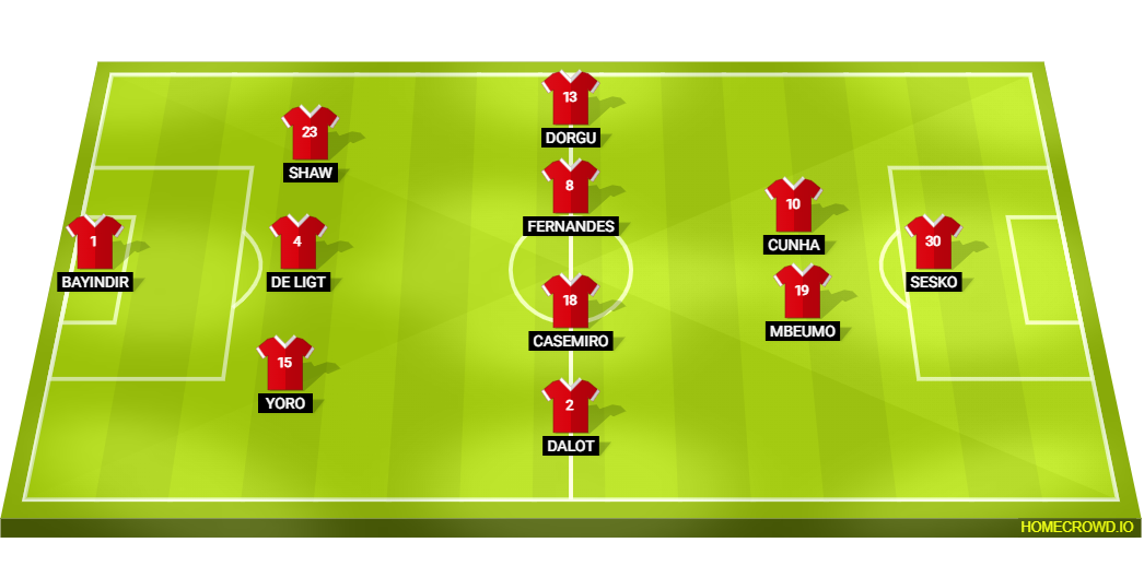 Probable Lineup (3-4-2-1): Bayindir; Yoro, de Ligt, Shaw; Dalot, Casemiro, Bruno Fernandes, Dorgu; Mbeumo, Cunha; Sesko