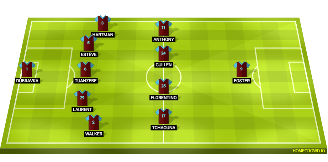 Probable Lineup (5-4-1): Dubravka; Walker, Laurent, Tuanzebe, Esteve, Hartman; Tchaouna, Florentino, Cullen, Anthony; Foster