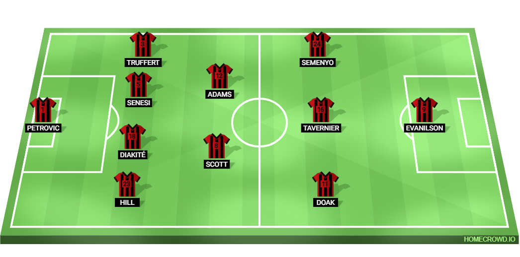 Bournemouth (4-2-3-1): Petrovic, Hill, Diakite, Senesi, Truffert; Scott, Adams; Doak, Tavernier, Semenyo; Evanilson