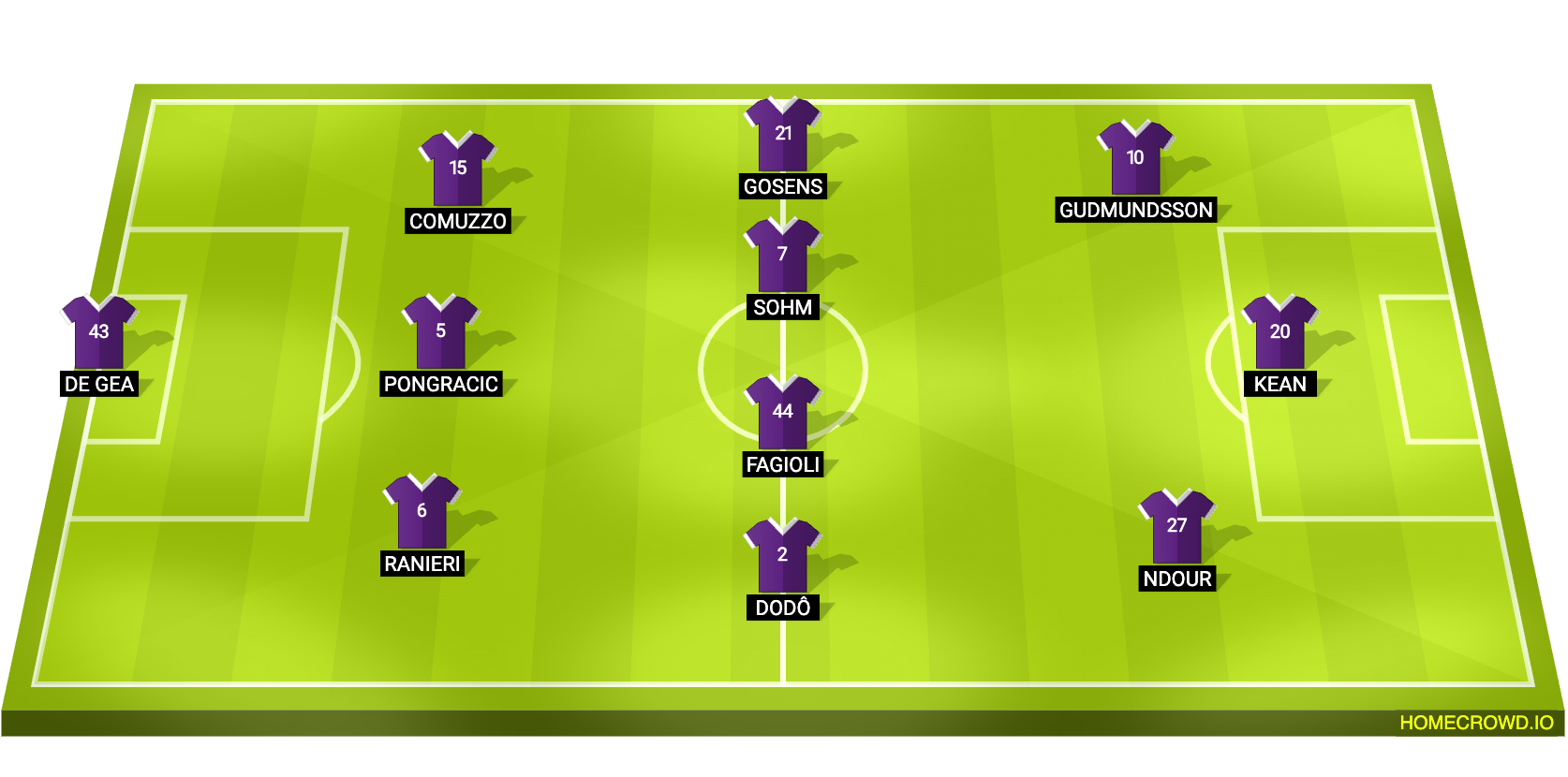 Probable Lineup (3-4-3): de Gea; Ranieri, Pongracic, Comuzzo; Dodo, Fagioli, Sohm, Gosens; Ndour, Kean, Gudmundsson
