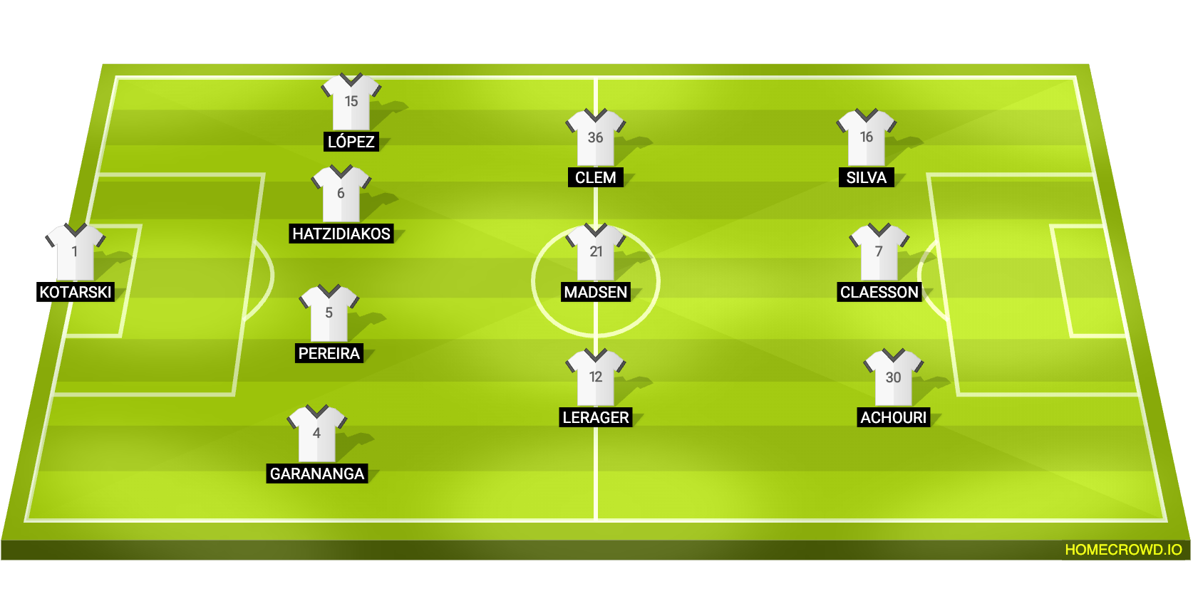 Mads Emil Madsen will sit at the base of Copenhagen’s midfield, with Lukas Lerager and William Clem on either side of him. Viktor Claesson will lead the line, with Elias Achouri and Robert Silva completing the front three setup.