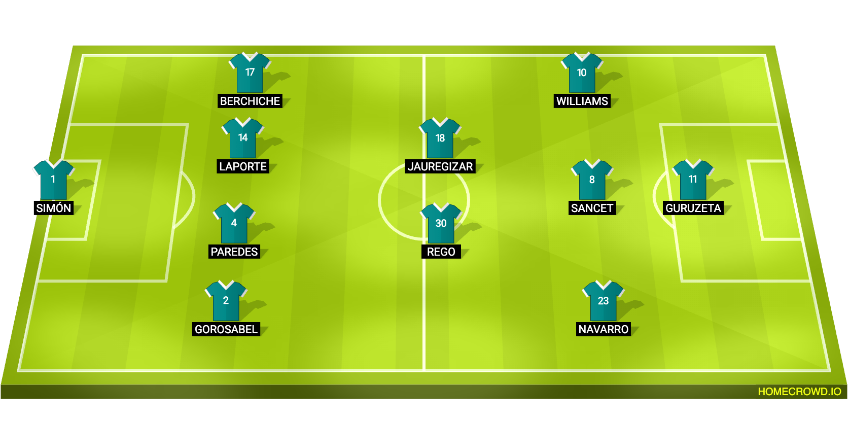 Probable Lineup (4-2-3-1): Simon; Gorosabel, Paredes, Laporte, Berchiche; Rego, Jauregizar; N. Williams, Sancet, Navarro; Guruzeta