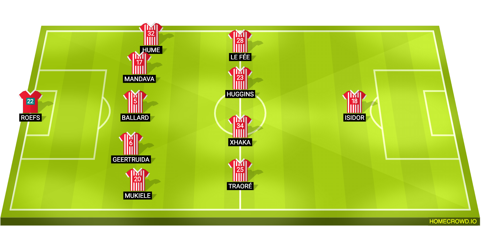 Probable Lineup (5-4-1): Roefs; Mukiele, Geertruida, Ballard, Mandava, Hume; Traore, Xhaka, Huggins, Le fee; Isidor