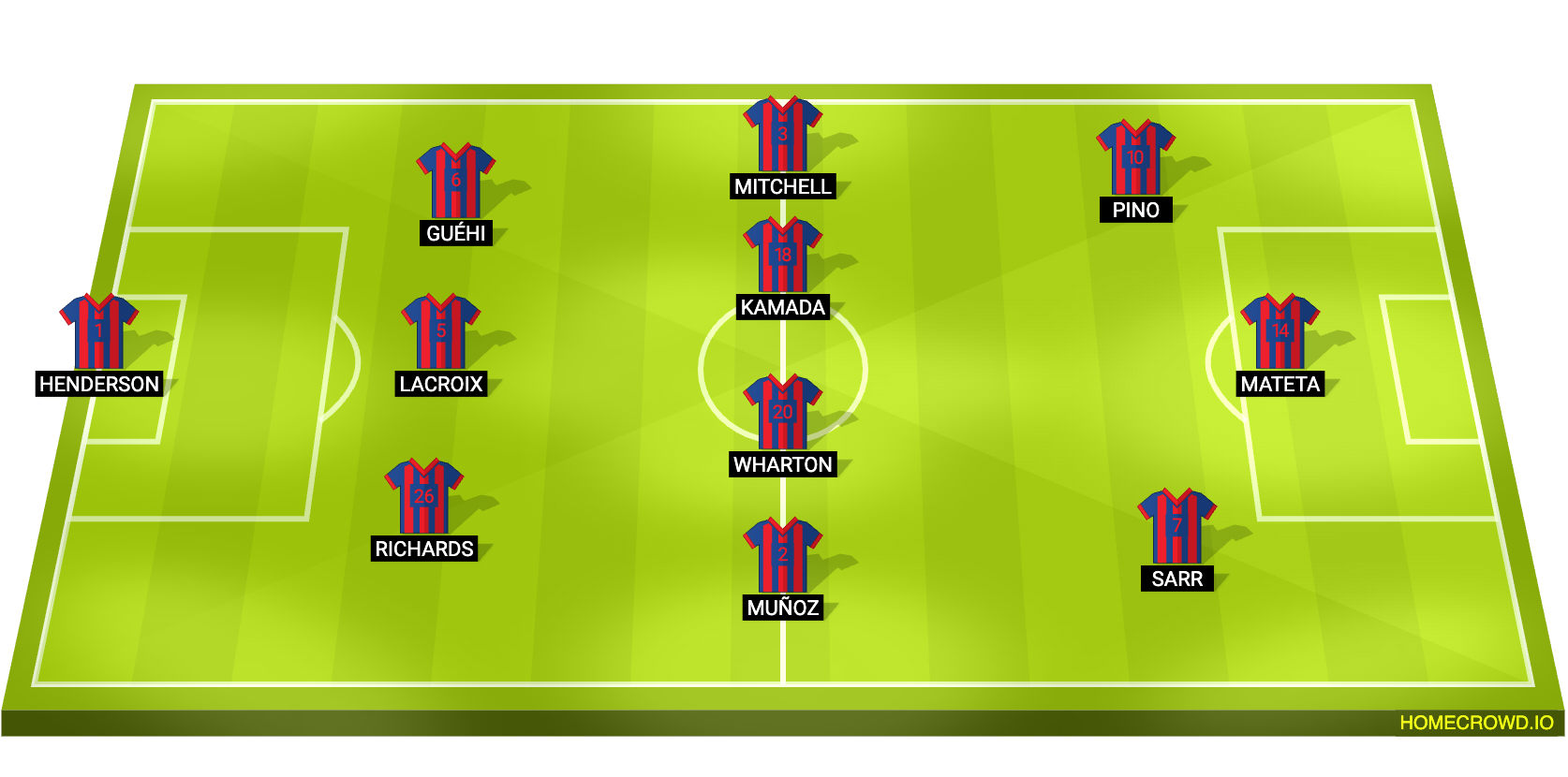 Probable Lineup (3-4-2-1): Henderson; Richards, Lacroix, Guehi; Munoz, Wharton, Kamada, Mitchell; Sarr, Pino; Mateta