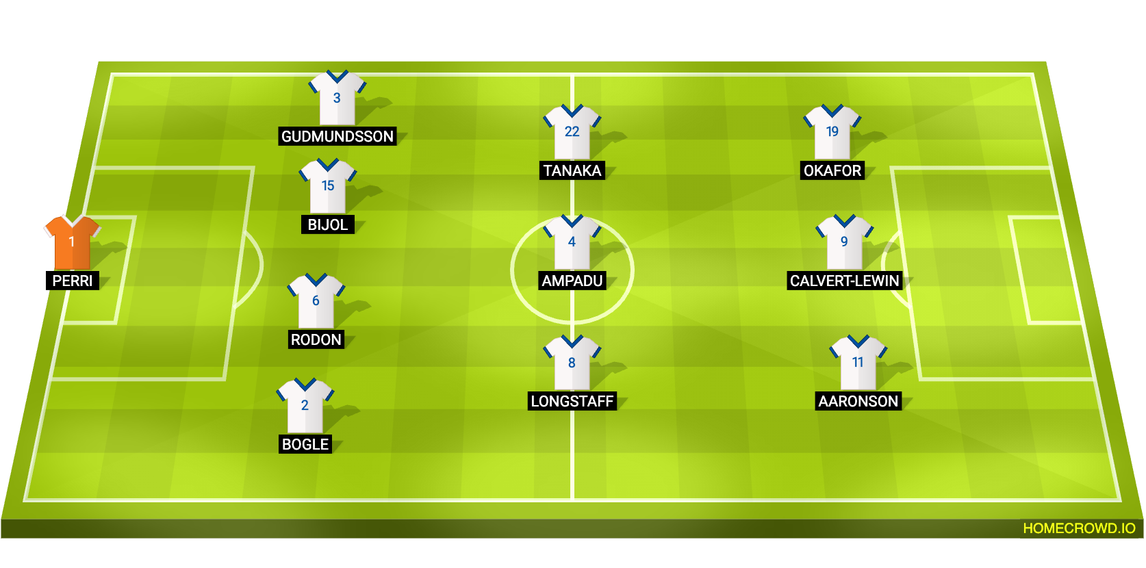 Probable Lineup (4-3-3): Perri; Bogle, Bijol, Rodon, Gudmundsson; Longstaff, Ampadu, Tanaka; Aaronson, Calvert-Lewin, Okafor