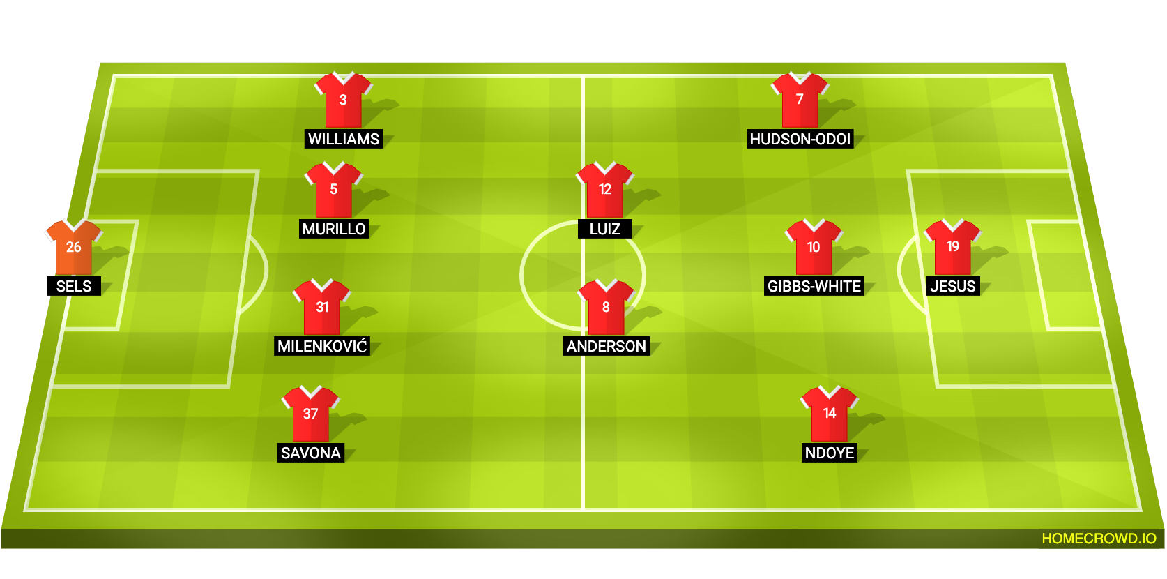 Probable Lineup (4-2-3-1): Sels; Savona, Milenkovic, Murillo, Williams; Anderson, Luiz; Ndoye, Gibbs-White, Hudson-Odoi; Jesus