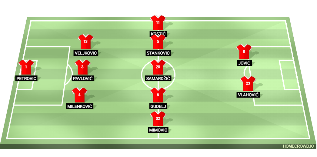 As for the midfield unit, Nemanja Gudelj, Lazar Samardzic, and Aleksandar Stankovic will start in the middle of the park. They will look to add physicality and defensive cover to the side. Finally, Dusan Vlahovic and Luka Jovic will lead the line for Serbia.