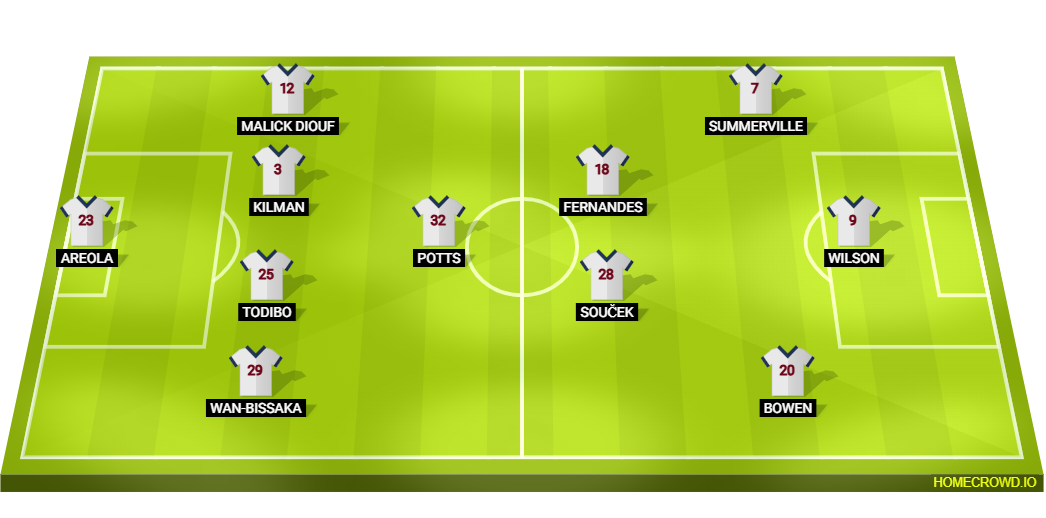 Probable Lineup (4-3-3): Areola; Wan-Bissaka, Todibo, Kilman, Diouf; Soucek, Potts, Fernandes; Bowen, Wilson, Summerville