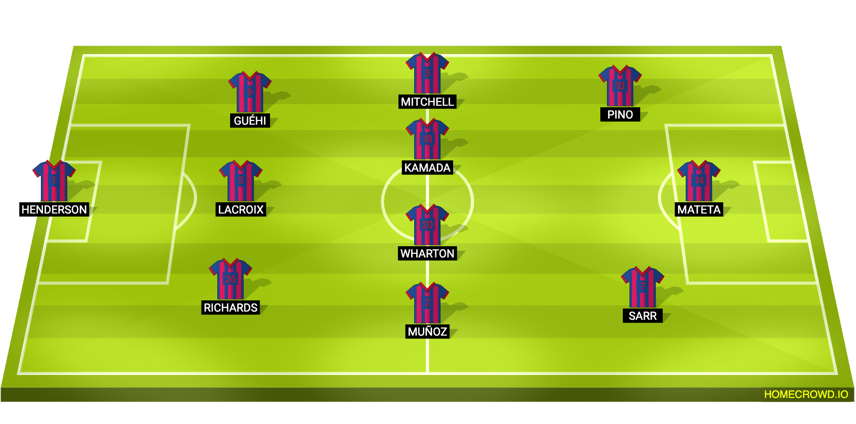 Probable Lineup (3-4-2-1): Henderson; Richards, Lacroix, Guehi; Munoz, Kamada, Wharton, Mitchell; Sarr, Pino; Mateta
