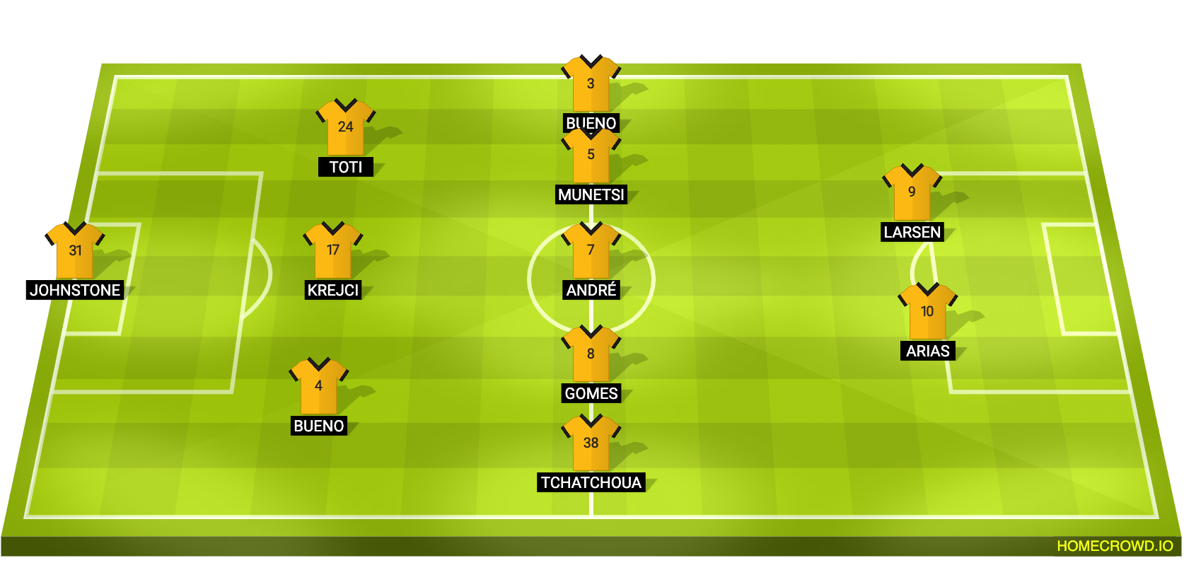 Probable Lineup (3-5-2): Johnstone; Santiago Bueno, Krejci, Toti; Tchatchoua, Joao Gomes, Andre, Munetsi, Hugo Bueno; Arais, Strand Larsen