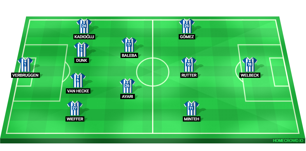 Probable Lineup (4-2-3-1): Verbruggen; Wieffer, Hecke, Dunk, Kadioglu; Ayari, Baleba; Minteh, Rutter, Gomes; Welbeck