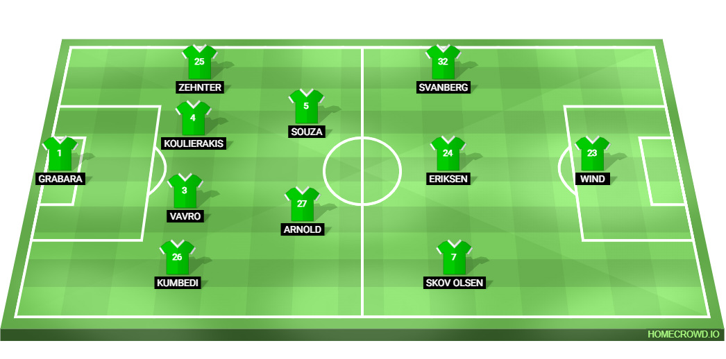 Probable Lineup (4-2-3-1): Grabara; Kumbedi, Vavro, Koulierakis, Zehnter; Arnold, Vinicius; Skov Olsen, Eriksen, Svanberg; Wind