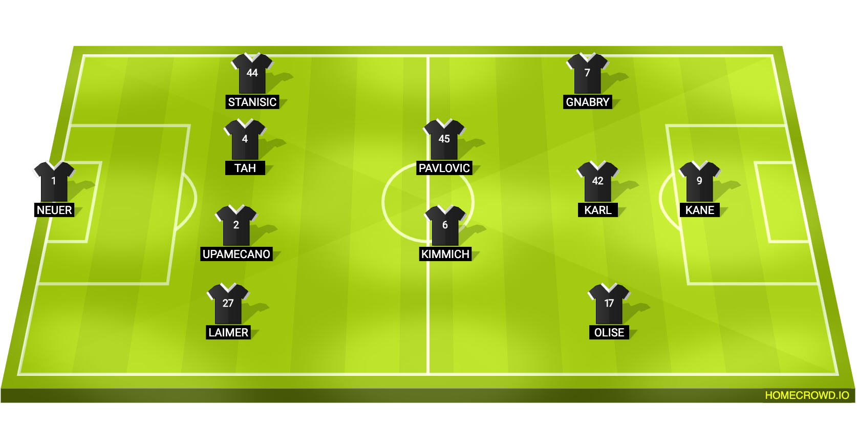 Probable Lineup (4-2-3-1): Neuer; Laimer, Upamecano, Tah, Guerreiro; Pavlovic, Kimmich; Olise, Karl, Gnabry; Kane