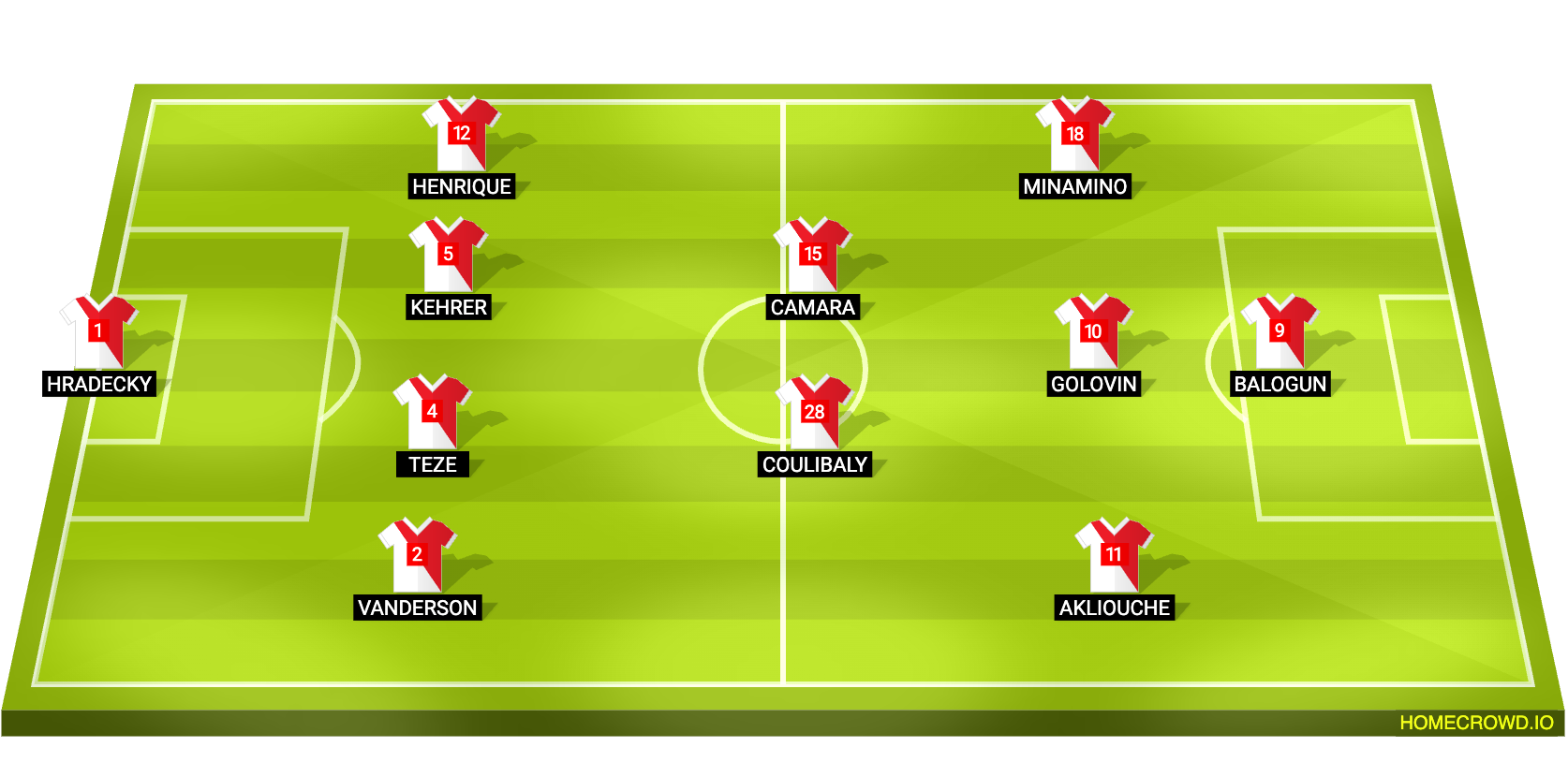 Probable Lineup (4-2-3-1): Hradecky; Vanderson, Teze, Kehrer, Henrique; Camara, Coulibaly; Akliouche, Golovin, Minamino; Balogun